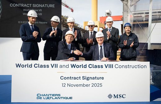 MSC Cruceros y Chantiers de l’Atlantique anunciaron la firma de pedidos para dos nuevos barcos de la serie World Class, los números 7 y 8, que serán entregados en 2030 y 2031.