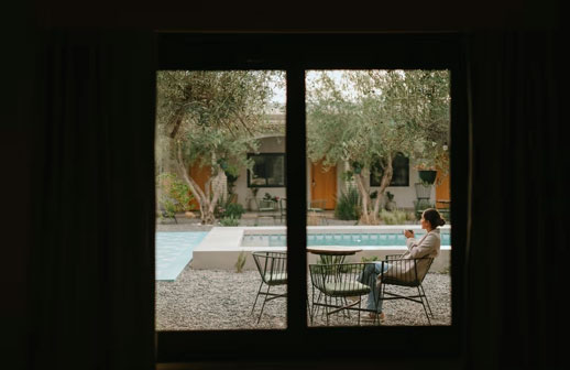 Por su parte, Casa Olivea apuesta por una hospitalidad íntima y cercana. Rodeada de olivos y viñedos, combina diseño contemporáneo con materiales nobles y detalles cálidos: café artesanal y pan recién horneado por la mañana, vino mexicano y atardeceres de película.